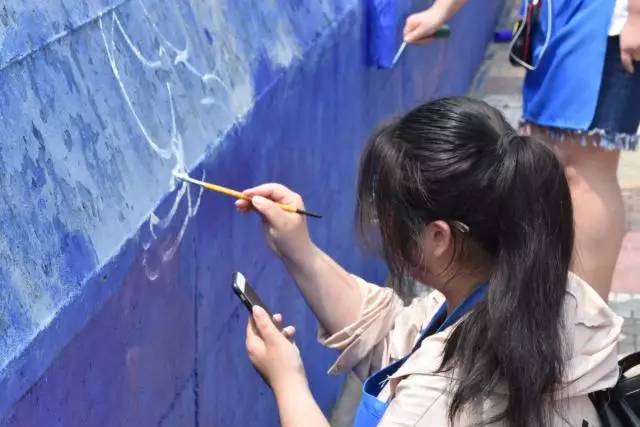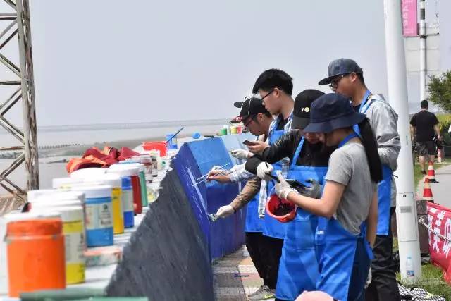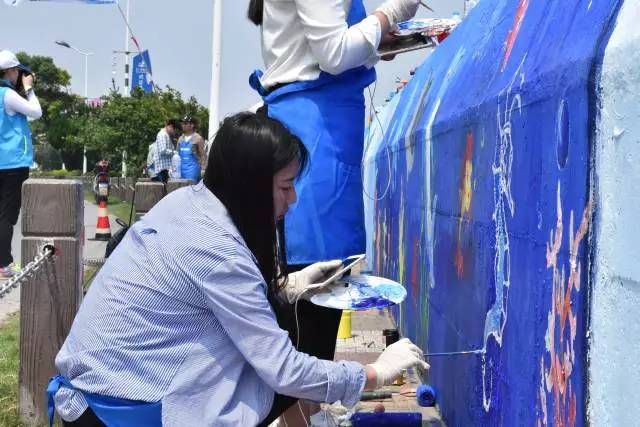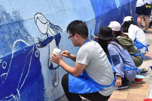 6月8日是世界海洋日,今年的主题是“扬波大海,走向深蓝”。应用艺术系30余青年团员和金山区海洋海塘管理所青年团员一起来到金山嘴渔村防汛墙开展”绘出青春之海“的主题团日活动。